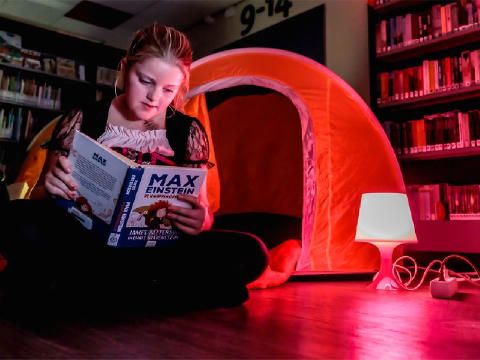Een nachtje slapen in de bieb? Dat kan tijdens Night @ the Library Junior. Je slaapt in een tentje en er is van alles te doen!