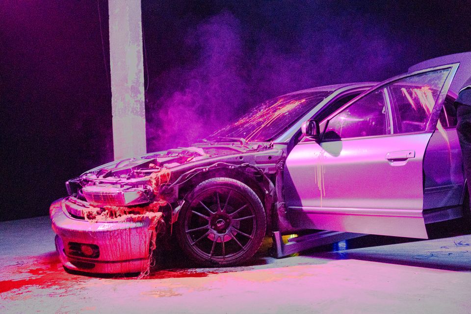TRIGGER WARNING: FLITSLICHTEN, HARDE GELUIDEN, VEEL PRIKKELS, BEELDEN VAN AUTO-ONGELUKKEN