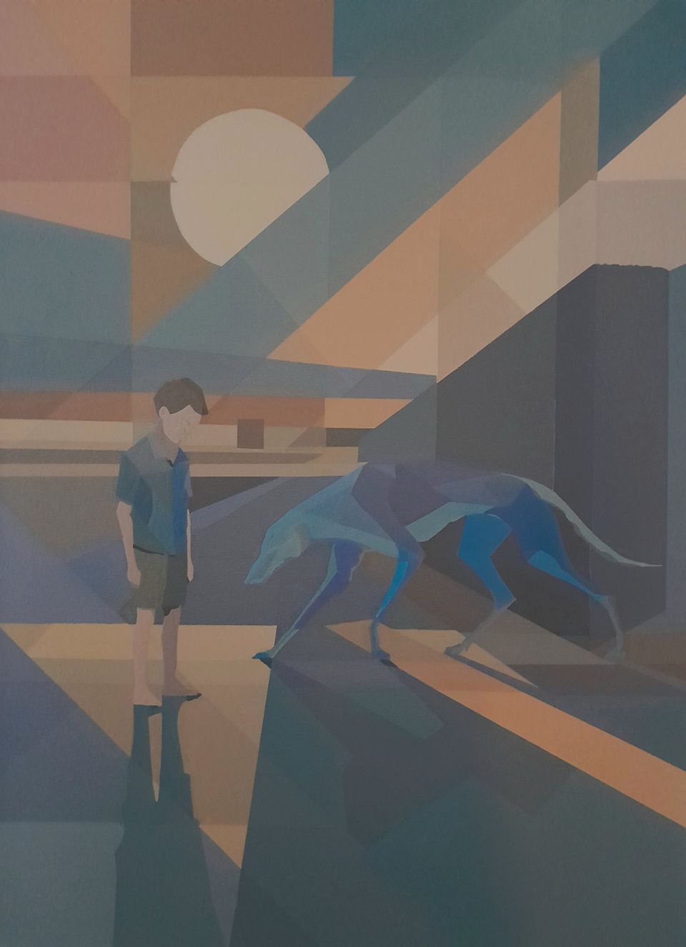 De werken tonen geometrische, verstilde composities waarin vormen scherp van elkaar gescheiden blijven. Architectonische structuren en archetypische beelden creëren een visuele taal die direct en helder oogt, maar tegelijkertijd een diepere, onderliggende lading draagt.