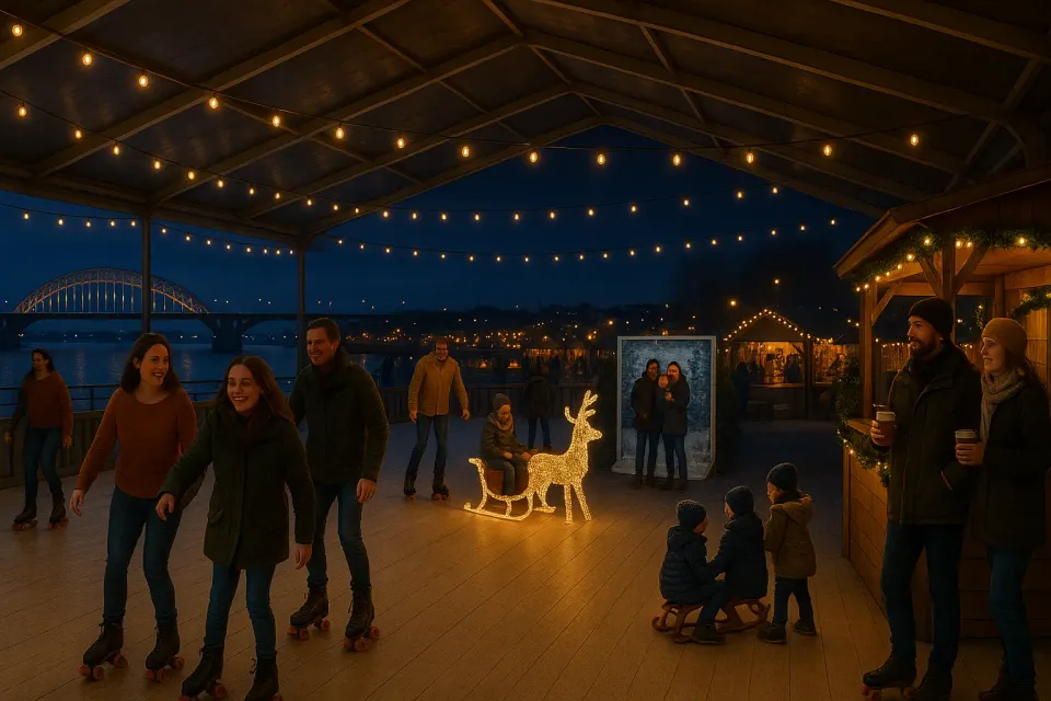 Tussen 20 december 2025 en 4 januari 2026 verandert de Waalkade in een feestelijke plek vol winterse gezelligheid! Trek je eigen of gehuurde skates aan en glijd over de rolschaatsbaan met uitzicht op de prachtige Waal.