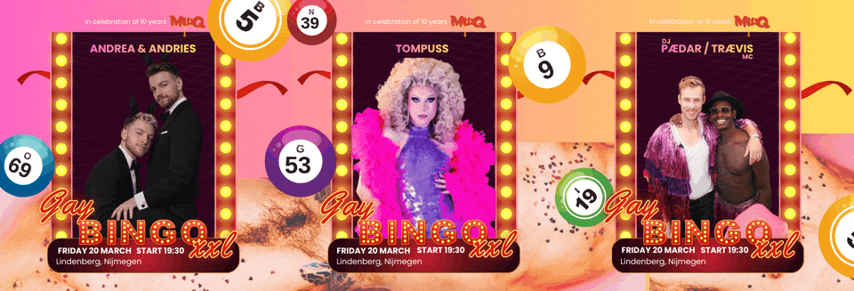 Ten years of MilQ, ten years of Nijmegens most sparkling queer playground. Time to celebrate together with the fabulous, camp, once-in-a-lifetime MilQ Gay Bingo XXL. Expect a show with amazing prizes! One round with balls, one round with music. Big pop anthems, zero guilt.