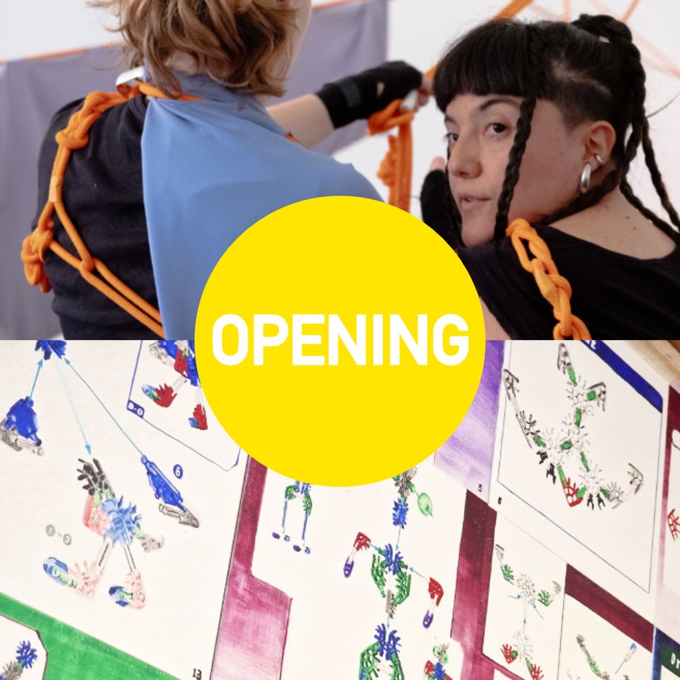 Tegelijkertijd opent TogetherTogether Collective hun projectperiode 'Practical proposals of what-might-be'. De afgelopen weken werkten en leefden zij al in de ruimte, die steeds verder transformeerde in een interactieve installatie van touwen en stoffen.