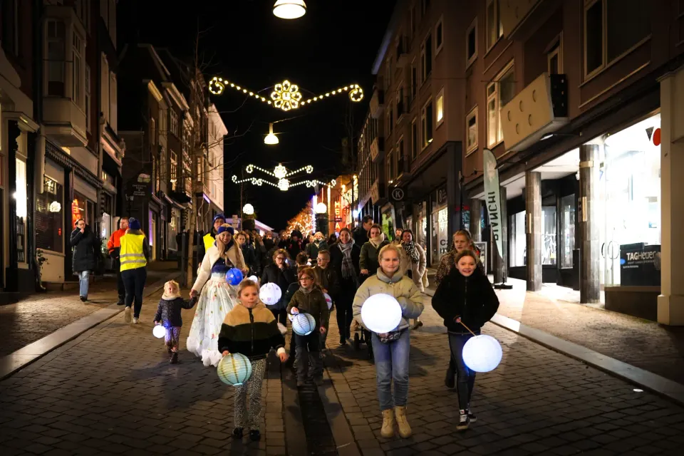 - Om 16:30 uur verzamelen we bij de Stevenskerk, en om 16:45 uur start de betoverende optocht: Een sfeervolle wandeling van zo’n 1,8 kilometer door de binnenstad, langs indrukwekkende lichtsculpturen en het grote lichtgevende hart op de Grote Markt, gevuld met gedoneerde lichtjes.