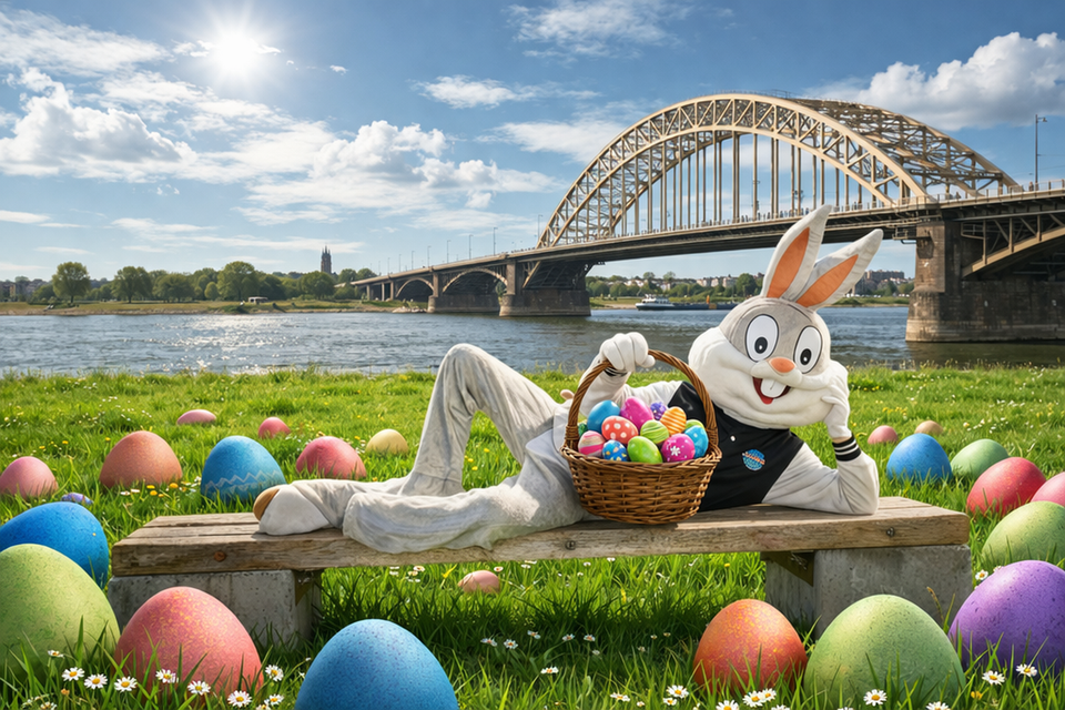 Op 5 april tussen 13:00 en 15:00 is het tijd voor een vrolijk Paasavontuur in Nijmegen. Babs en Bugs Bunny zijn op pad gegaan… maar waar hebben ze zich verstopt?