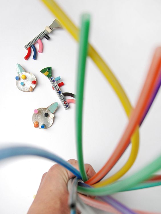 De technisch zeer vernuftig uitgevoerde draagbare kunstwerken van Danni Schwaag in de tentoonstelling Twisted Coagulation, zijn de uitkomst van onderzoek naar het materiaal galalith, een caseïne-materiaal van ruim 100 jaar oud – en een van de eerste kunststoffen – en naar haar eigen ‘zijn’.
