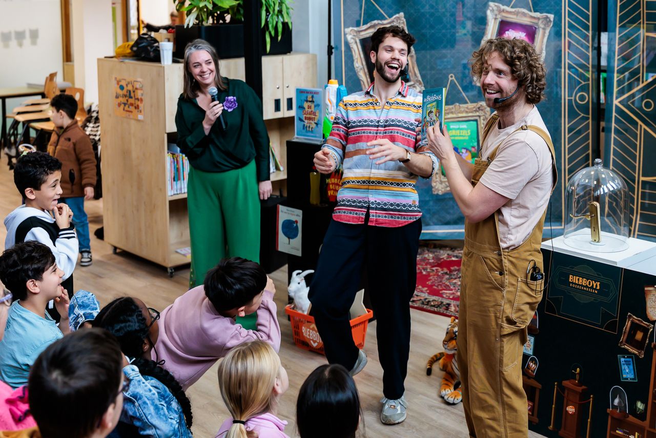 Op dinsdag 9 december presenteerden de BiebBoys het nieuwe boek ‘De BiebBoys beroemd!’ in Kindcentrum TOON in Nijmegen. Ze onthulden het toneelleesboek van schrijver Petra Mackenbach in hun eigen boekenmuseum.