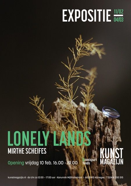 Zaterdag 11 februari start de expositie Lonely lands van Mirthe Scheifes in Kunstmagazijn. Vrijdag 10 februari om 16:00 uur is de opening met spreker Bibi Straatman. Toen Mirthes leefruimte door omstandigheden beperkt werd tot de huiskamer, richtte ze haar blik naar het kleine, het onooglijke, het afval van het levende en plots werd een dode vlieg een object van schoonheid en reflectie.