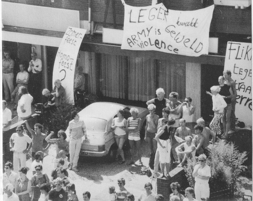 De situatie tijdens de Vierdaagsefeesten was voor LHBTI-ers niet altijd zo roos(of roze)kleurig. Tijdens de Vierdaagsefeesten van 1983 ontstonden er anti-homorellen. Relschoppers probeerden homocafé ‘t Bakkertje binnen te dringen. Er werd zelfs een molotovcocktail naar binnen gegooid. Meerdere LHBTI-ers raakten gewond, maar de daders werden slechts gesust door de politie. De politie kwam pas echt in actie toen er een bierblikje naar een politiepaard werd gegooid. “Beter een politiepaard dan een homo”, staat er in het zwartboek dat COC Nijmegen opstelde naar aanleiding van de Vierdaagsefeesten van dat jaar. Dit is niet het enige voorbeeld van geweld gericht op LHBTI-ers tijdens de Vierdaagse. Veel mensen die deel uitmaakten van een (seksuele) minderheid ontvluchtten Nijmegen zelfs tijdens de Vierdaagsefeesten. Zij werden vaak slachtoffer van gescheld, getreiter of geweld.