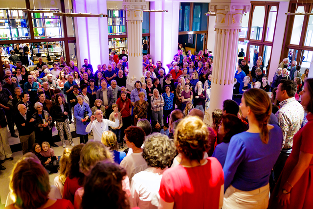 Honderden Nijmeegse muzikanten in De Vereeniging tijdens "Podium voor de Stad" op 29 maart