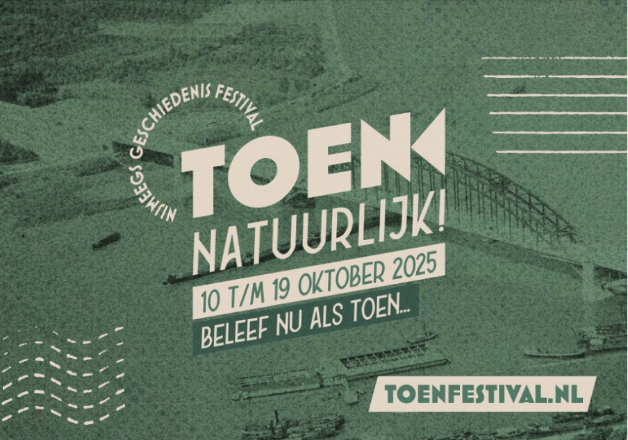 Het aftellen is begonnen! Van 10 t/m 19 oktober keert het TOEN Festival terug voor de derde editie. Dit jaar met het thema ‘Natuurlijk!’. Samen met talloze Nijmeegse erfgoedorganisaties blaast het Huis van de Nijmeegse Geschiedenis het verleden nieuw leven in.