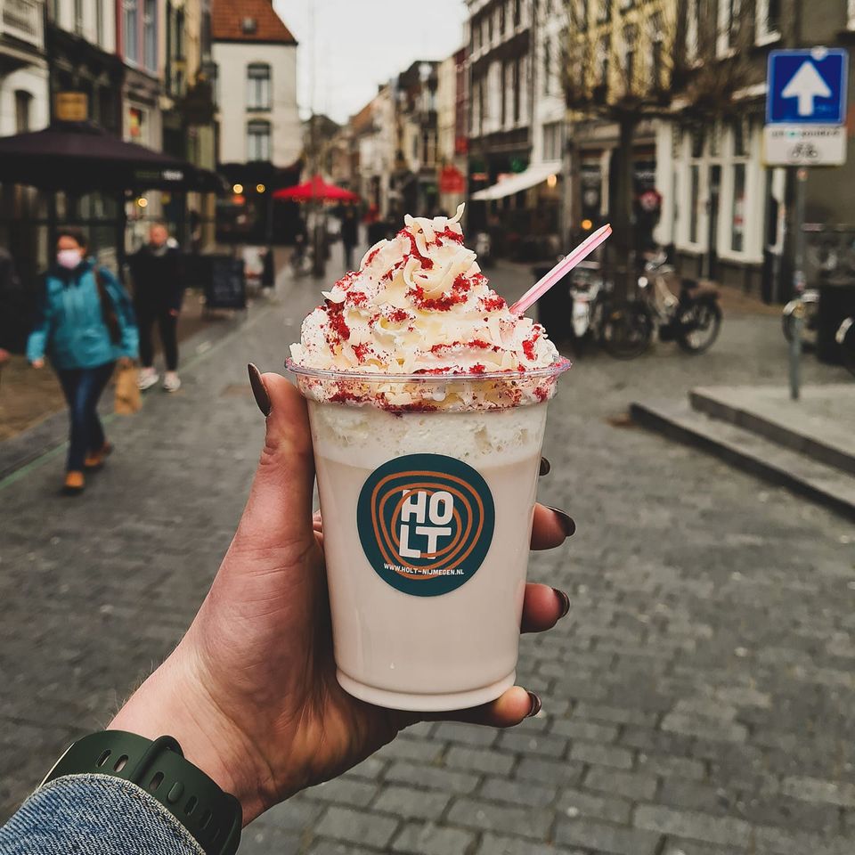 Voor zowel een classic chocolademelk als vegan optie ben je bij Holt, aan de Houtstraat, op het juiste adres. Ze hebben er zelfs vegan slagroom om jouw warme choco helemaal compleet te maken. Yummy!
