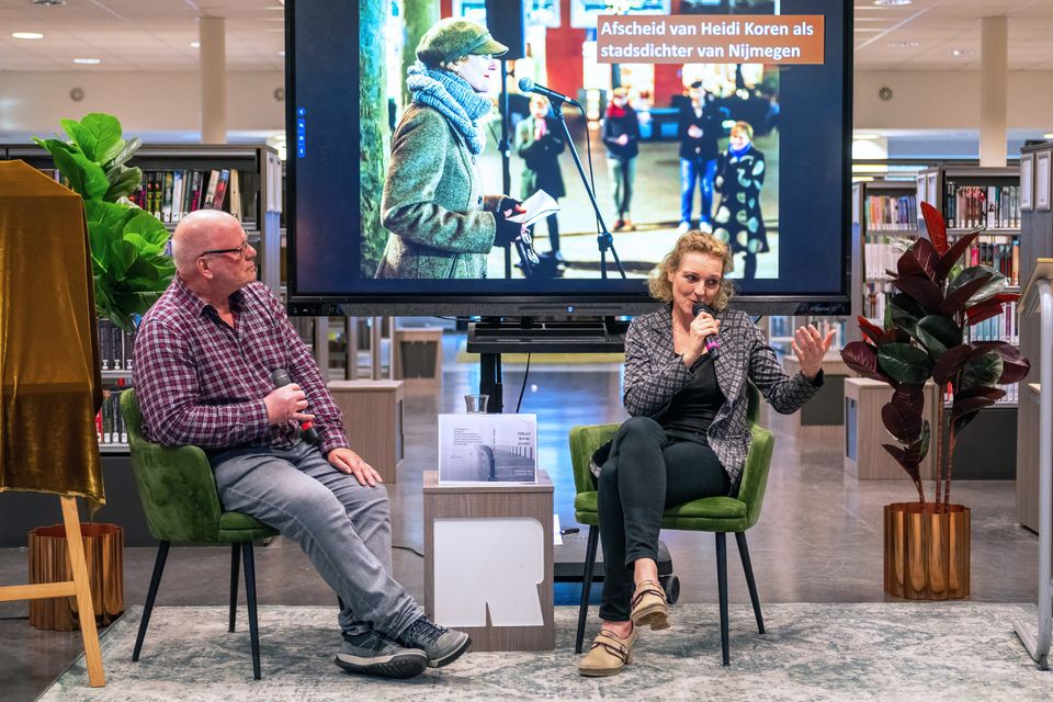 Op zaterdagmiddag 23 maart nam Heidi Koren in Bibliotheek Mariënburg afscheid als stadsdichter van Nijmegen. Ze trad aan in 2021 en bleef vanwege corona een jaar langer stadsdichter dan de gebruikelijke twee jaar. Tijdens het afscheid spraken een aantal speciale gasten haar toe.