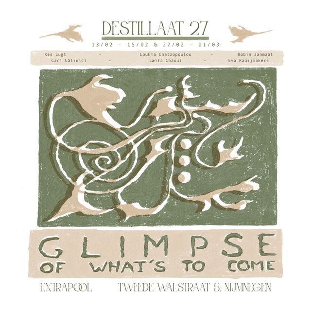 Extrapool bezoekt ieder jaar de eindexamenexposities van de Nederlandse kunstacademies. Wat houdt deze jonge kunstenaars bezig? Hoe geven ze vorm aan hun werk aan het eind van hun academietijd? In februari nodigen ze een selectie van veelbelovende, net afgestudeerde kunstenaars uit voor een werkperiode van twee weken in Extrapool. Rondom het thema Glimpse of What to Come staan de werken van Kes Lugt, Loukia Chatzopoulou, Robin Janmaat, Cari Călinici, Læila Chaoui & Eva Raaijmakers centraal.