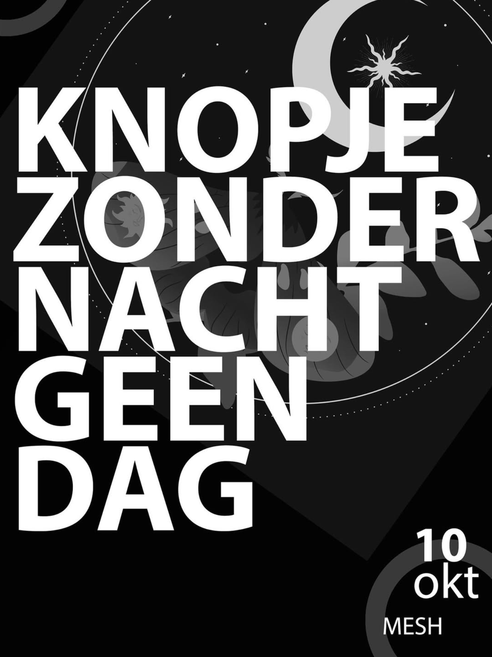 Op vrijdag 10 oktober keert de geliefde clubnacht van Knopje terug met "Zonder nacht geen dag" op een frisse locatie: Mesh. Met ongeremde energie en een onwrikbare liefde voor klanken, belooft dit hun eerste nachtfeest in lange tijd te worden. Verwacht een intense, compromisloze avond waar sonische grenzen worden verlegd. Met deze clubnacht gaat Knopje terug naar de kern: het gemeenschapsgevoel staat centraal. De line-up met Just a guy, Vilosov, Roi Koch en Arjuna Schiks garandeert een onvergetelijke nacht.