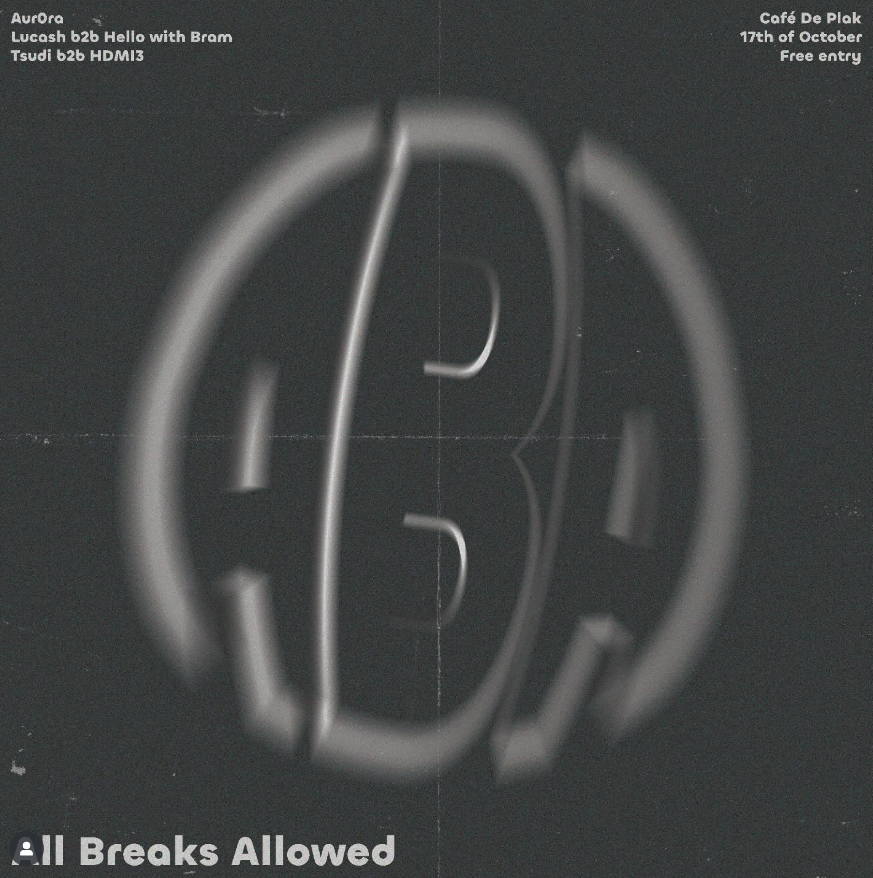 All Breaks Allowed is terug met niemand minder dan Lucash, Hello With Bram, AUR0RA, Tsudi & HDMI3. Omarm de herfst en kom dansen in de kelder van De Plak!