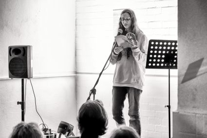 Na de pauze was het tijd voor Sam Ellyn Theunissen, maker bij Wintertuin en organisator van Literatuurnest Nijmegen. Als last-minute vervanging liet hen een sprekende tekst horen over verbinding en vervreemding die alle bezoekers in de zaal nog even liet nadenken. Vervolgens was het de beurt aan Sholeh Rezazadeh, een Iraanse-Nederlandse schrijver, dichter en performer. Met drie verschenen bundels en Nederlands als tweede taal was ze een indrukwekkende verschijning! Met haar krachtige woorden en een vleugje humor nam ze de hele zaal mee in haar verhaal.