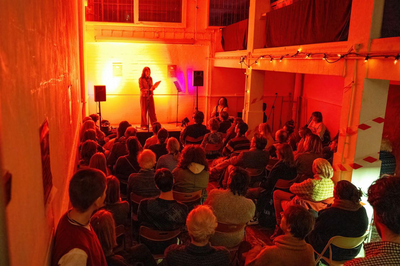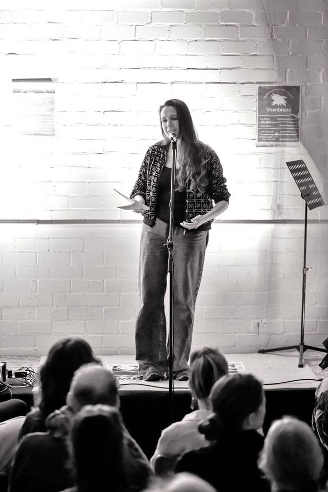 De avond deed eer aan het thema met een line-up van stuk voor stuk eigenzinnige dichters. Eva Meijer, Dominique de Groen, Robin Block, Sholeh Rezazadeh en Sam Ellyn Theunissen. De schrijfster van het Poëziegeschenk 2026 (’Metamorfose’), Ellen Deckwitz, opende de avond.