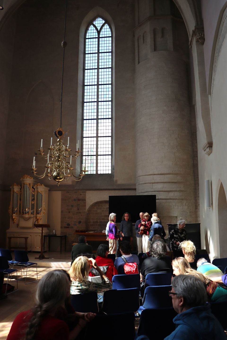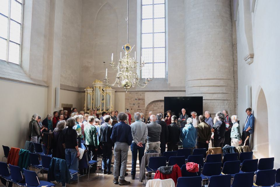 Samen zingen, ook dat is verbinding. Ellen Deiman zette alle aanwezigen in een cirkel en liet ze a capella en in canon het woord ‘Shima’ zingen. Liefde in de taal van de Hopi-indianen. Hoe mooi klonk dat, in de galm van de Zuiderkapel.