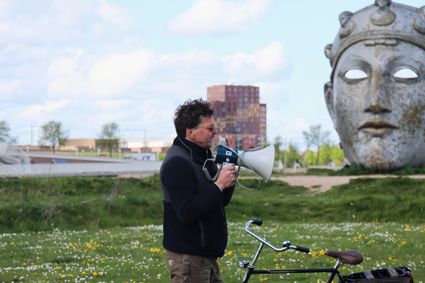 Simon Mamahit, stadsdichter van Nijmegen, droeg zijn gedicht ‘Ooit klappen de bubbels’ voor. Ooit stappen we moeiteloos over alle drempels. Ooit klappen de bubbels, er is hoop.