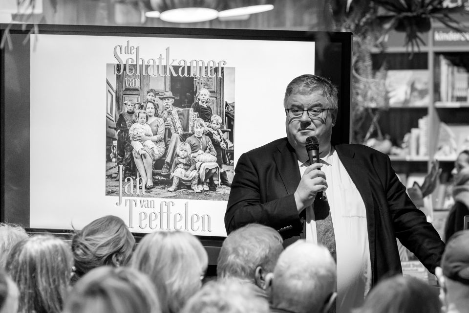 In een goedgevulde Dekker v.d. Vegt vertellen Henk Braam en Ger Loeffen, bestuursleden van de stichting, over hun monnikenwerk. Ga er maar aanstaan, keuzes maken uit zoveel materiaal. Want dat er een boek moest komen was al heel snel duidelijk. Het werk van Jan van Teeffelen hoort tot het materiële erfgoed van de stad en verdient het om gezien te worden. Vandaar ook dat het eerste exemplaar door voorzitter Wim Hompe wordt aangeboden aan Hubert Bruls, burgemeester van de stad die zo fraai in beeld is gebracht. Hij complimenteert de samenstellers en hij heeft het even uitgerekend: er is pas één duizendste procent van het fotomateriaal gebruikt dus hij verheugt zich al op vervolgboeken die hopelijk nog gemaakt gaan worden.