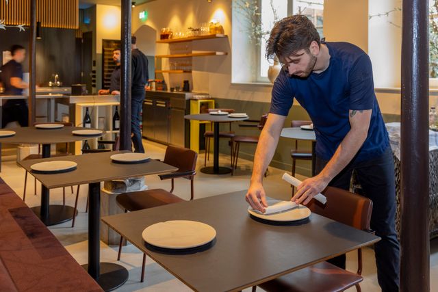 “Zo’n divers samengesteld team, met verschillende achtergronden, verhalen en werkervaring is hartstikke leuk”, vindt Emile. “Het geeft een heel andere dynamiek dan ik zelf indertijd heb ervaren. En ja, natuurlijk verrijkt het ook wat gasten op hun bord krijgen. Zonder migratie zouden we maar een armoedig dieet hebben. Zo hebben we laatst dankzij Giorgos uit Cyprus een herinterpretatie geserveerd van spanakopita: filodeeg gevuld met spinazie en feta. De feta maken we op basis van meloenpitten, de spinazie vervangen we door brandnetel.” Groot succes: het gerecht kon zelfs de goedkeuring wegdragen van een gast uit Griekenland, bakermat van de spanakopita, zo vertelt Emile.