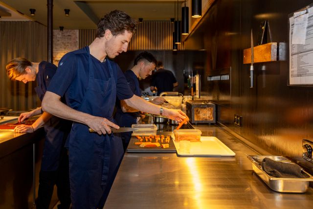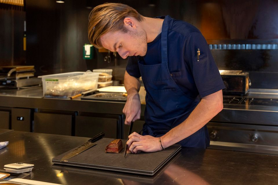 Gerechten die je als gast voorgezet krijgt, zijn vaak erg bewerkelijk, en dat proef je. De presentatie is voorbeeldig, de bediening persoonlijk. Dat alles vergt veel menskracht. In totaal zijn ruim veertig man personeel in touw om het iedere avond zo’n veertig gasten naar de zin te maken. Geen geringe opgave om dat goed te managen.