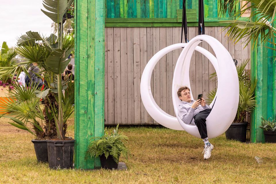 Ons festival begint met een optreden van Michela Amici en Isabel Pronk op de Bossa Nova: een klein theater aan de achterkant van het terrein. Het publiek dat aanschuift op de podiumbanken laat een mengelmoes zien van festivalgangers die hun tent zijn uitgerolt in pyjama en rabbits die al opgedirkt aan hun eerste biertje zitten. De sfeer is magisch. De harp- en sopraanklanken van de artiesten worden versterkt door het geluid van ritselende bomen en vogelgekwetter. Hier en daar zien we de eerste tranen van vervoering vloeien. Met een staande ovatie sluiten we deze eerste act af.