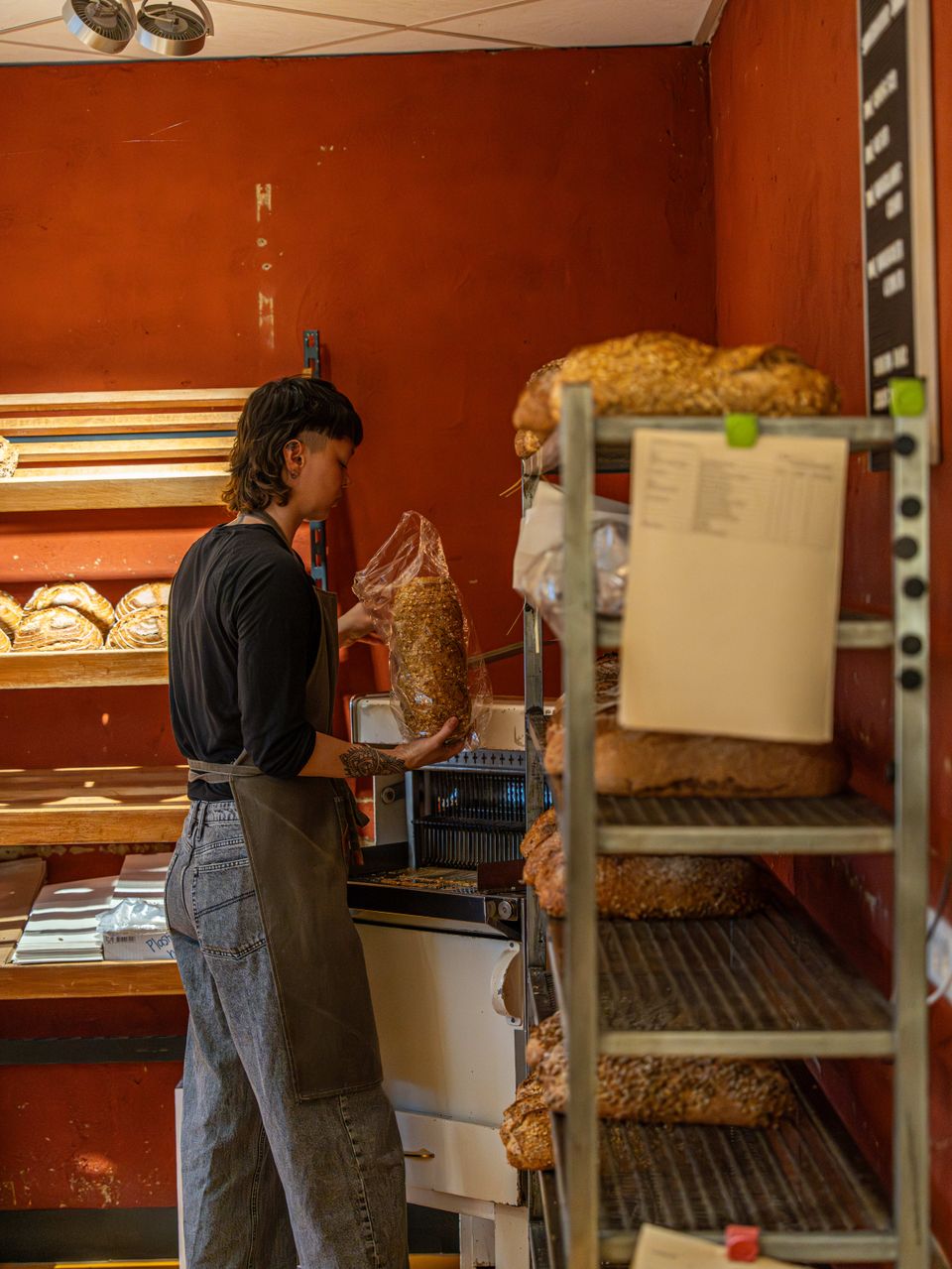 Dit geduld met het deeg komt ook terug in het gebruik van zuurdesem voor alle baksels. “Wij gebruiken geen gist, geen toevoegingen en geen broodverbeteraar. Als je met zuurdesem werkt, kun je de smaak halen uit tijd. Tijd is smaak, dat zie je ook bij wijnen. Dan heb je echt een heel lekker brood dat ook gezond is”, vertelt Jorrit verder over het bakproces. “Bij onze broden van dertig uur zijn de gluten minder aanwezig. Ook suikers zijn door het fermenteren al voor een deel opgelost. Het is een heel ander proces dan van brood dat in de supermarkt ligt. Ik geloof in puurheid en tijd.”