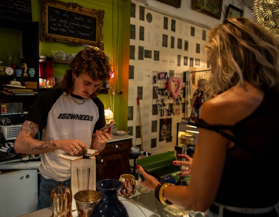 Wanneer de winkel om half twaalf opent, heeft Ellen er vaak al een halve werkdag op zitten. Met haar busje haalt ze koopwaar op bij adressen in en rond Nijmegen. Daarnaast reist ze meerdere keren per jaar naar markten in Parijs, op zoek naar bijzondere vondsten. Habbekrats was de eerste commerciële tweedehandswinkel van Nijmegen. In plaats van spullen gratis op te halen, werd alles zorgvuldig ingekocht — een aanpak die tot op de dag van vandaag geldt. Het aanbod is met zorg samengesteld. Het prijskaartje voelt daardoor soms wat minder als een echte ‘habbekrats’, maar wél als een eerlijke prijs voor iets met karakter en kwaliteit.