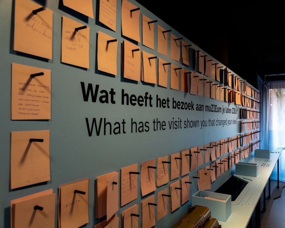 “Wij delen verhalen van kracht, verhalen van mogelijkheden. Het draait om de verhalen van de gidsen die je rondleiden, die je letterlijk door hun ogen laten kijken. Het muZIEum opent je de ogen, laat je beseffen hoe visueel onze wereld is en hoe je daar – mét de juiste tools – ook als blinde of slechtziende heel goed in kunt bewegen. We hopen mensen wat aan te zetten, in begrip, in bewustwording. Of het nu een werkgever is die hier wegloopt die denkt: ‘zo kan ik dat ook doen', of iemand die zich bedenkt om niet de fiets op de geleidelijn te parkeren. Er zijn veel kleine dingen die laten zien dat als we allemaal samenwerken, er heel veel wél kan. Dan kan er een hele groep wéér, nee, een hele groep gewóón meedoen. “Door écht te kijken”, sluit Heleen af, “ervaar je dat je niet per se hoeft te zien. Zien is meer dan kijken.”