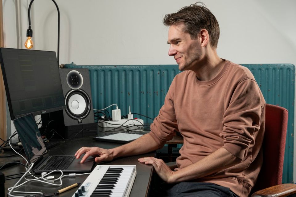 Kleinkunstenaar Teun van Laake kwam bij De Basis als schrijver en dichter, maar al snel bleek dat hij veel meer in zijn mars heeft. In zijn tijd als resident bij het voormalige Doornroosje heeft hij een hiphopalbum uitgebracht. Nu bekijkt, of eerder beluistert, hij welke richting hij nog meer op kan gaan: “Ik wil kijken wat ik met omgevingsgeluiden kan bereiken”.