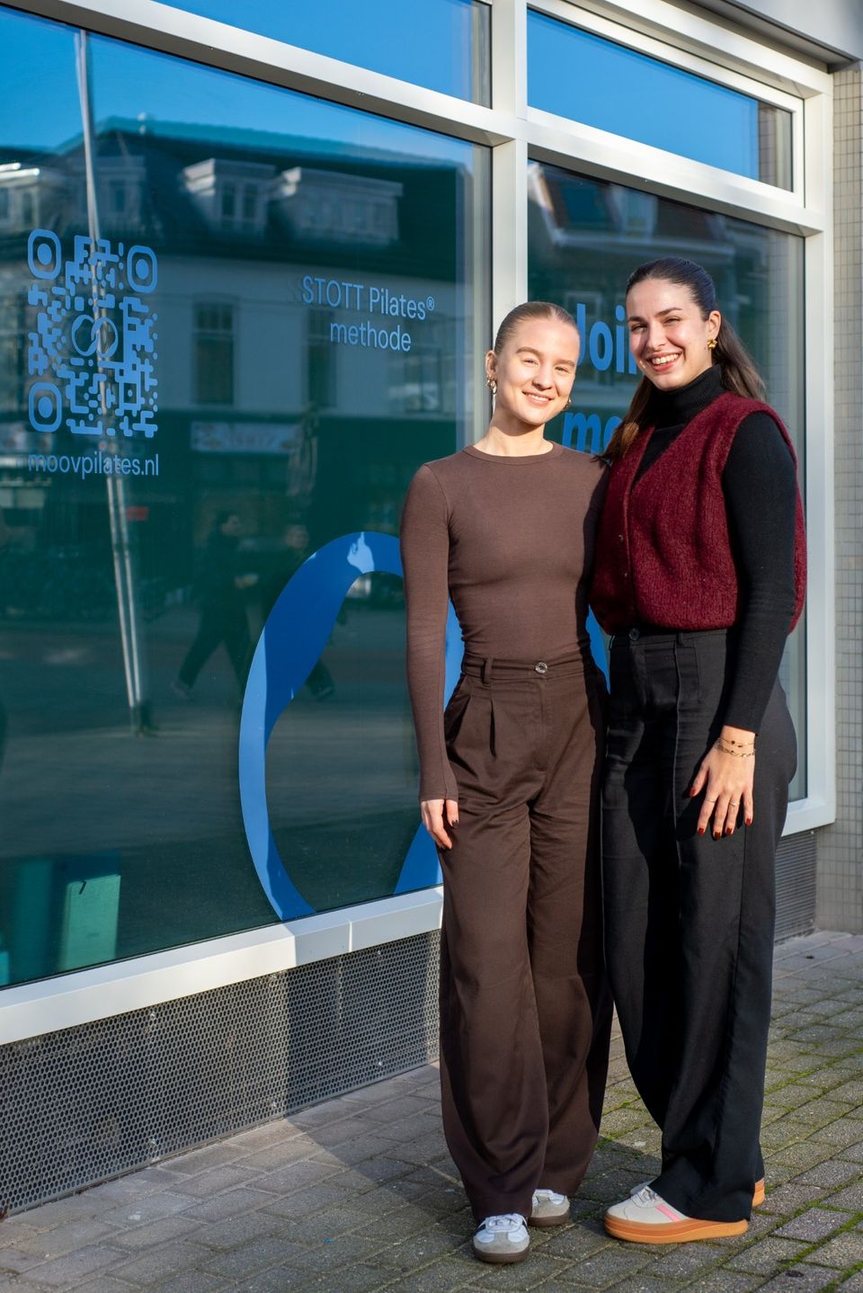Na een flinke verbouwing was het in november 2025 zover: MOOV Pilates opende haar deuren. Op de ramen prijkt het zelfontworpen logo, waarbij de twee O’s verwijzen naar de weerstandsringen die regelmatig tijdens de lessen worden gebruikt.