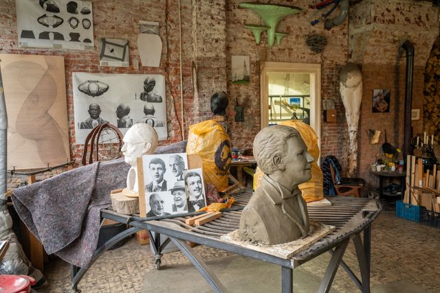 Ja, zó ziet een kunstenaarsatelier eruit, denk je meteen als je de werkruimte van Andreas binnenstapt. Overal foto's, schetsen, beelden, installaties, proefopstellingen en schaalmodellen. In de hoek staat een knusse potkachel te snorren, met een pannetje soep dat zachtjes pruttelt. Grote ramen met uitzicht op een weelderige moestuin. Werklust en gezelligheid in één ruimte. Andreas in zijn element.