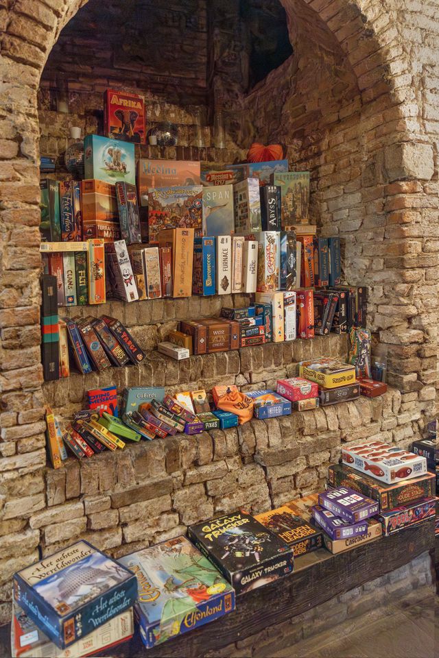 “Je kunt hier in het voorste deel van de winkel even zitten met een kopje koffie of thee, terwijl je een spelletje speelt of zoekt in de winkel”, vertelt mede-eigenaar Steye. Hij woont al 25 jaar in Nijmegen en hij en zijn compagnon Merel hadden dit idee al tien jaar lang in het hoofd. “En ‘s avonds gooien we de deuren van het keldercafé open.” Steye legt uit dat dit winkelcafé moet zien als een soort proeflokaal, waar je spelletjes kunt spelen of “proeven” en als het je bevalt, kun je ‘m ook kopen.