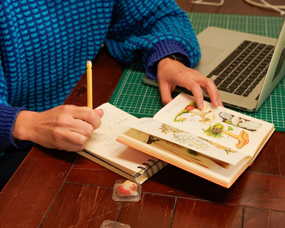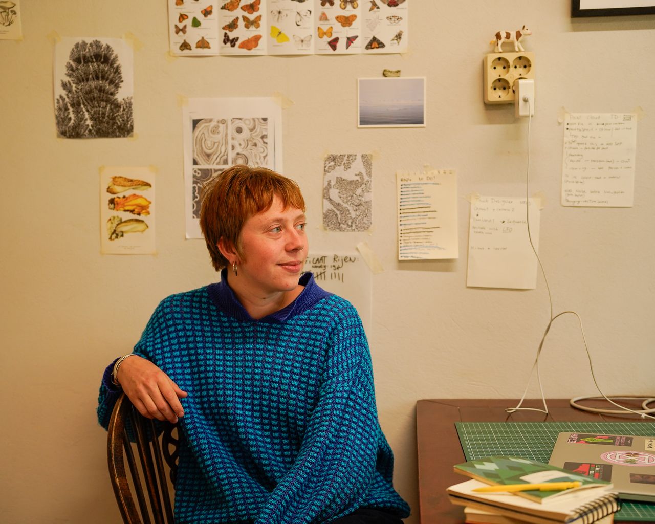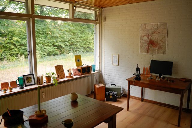 "Mijn inspiratie haal ik uit directe ontmoetingen met het landschap en de wezens die er leven. Tijdens veldwerk onderzoek ik hoe meer-dan-menselijke organismen reageren op verstoring en zo stille getuigen worden van ecologische verandering. Bio-indicatoren zijn hierbij een grote inspiratiebron: zij fungeren als gevoelige meetpunten voor ecologische verschuivingen. Door aandacht te besteden aan bio-indicatoren krijg ik niet alleen inzicht in ecologische veranderingen, maar ontwikkel ik ook een intiemere en affectievere relatie met de levende wereld."