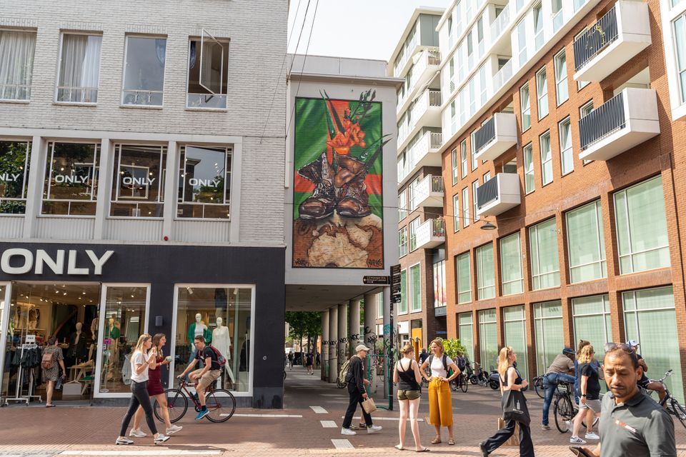 Op het kruispunt tussen de Molenstraat en Plein ’44 vind je de Waalpainting Walk of the World gemaakt door de twee Nijmeegse kunstenaars Moris en Santo. Het kunstwerk symboliseert met verschillende elementen het heden en verleden van het wandelevenement de Vierdaagse.