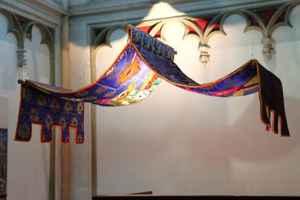 Hemaseh Manawi Rad werkt niet alleen met textiel en keramiek, maar ook met herinneringen, symbolen en stemmen uit het verleden. In haar werk komen haar culturele achtergronden Iran en Nederland samen. Haar kleurrijke baldakijn is geïnspireerd op de miniaturen rondom de aanbidding van de wijzen. Allegorische figuren als de Egyptische Anubis en de Perzische vogel Seemorgh heeft zij erin verwerkt.