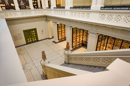 “Meneer Kam heeft toen dit stuk grond gekocht waar het museum nu staat, en daar heeft hij ook opgravingen laten doen,” zegt Barbara. “Hier zijn ook veel vondsten gedaan, ook terug te zien in de collectie. Na de opgravingen heeft meneer Kam dit gebouw laten bouwen, door Oscar Leeuw – een bekende architect hier in Nijmegen. Meneer Kam heeft toen zijn hele collectie én het gebouw aan de staat geschonken, zodat alle vondsten in Nijmegen zelf tentoongesteld konden worden. Dat is toen in 1922 geopend: Rijksmuseum Kam.”