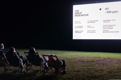 Net zo confronterend is de ‘documentaire’ The Great Endeavour. Hierin wordt een beeld geschetst van hoe de mensheid in de toekomst zou kunnen omgaan met het opvangen van CO2 uit de lucht. Dystopisch en beangstigend zijn de beelden van enorme windparken en turbines op zee, zonnepanelen in de woestijn en huizenhoge installaties op braakliggend land, zo ver het oog rijkt.