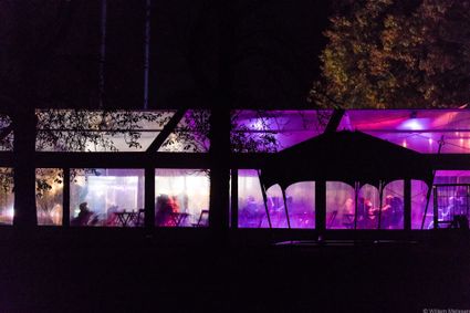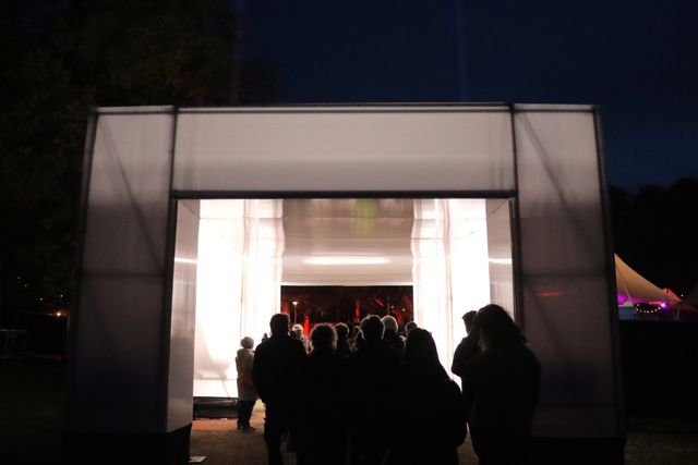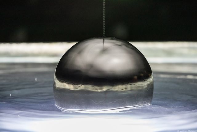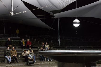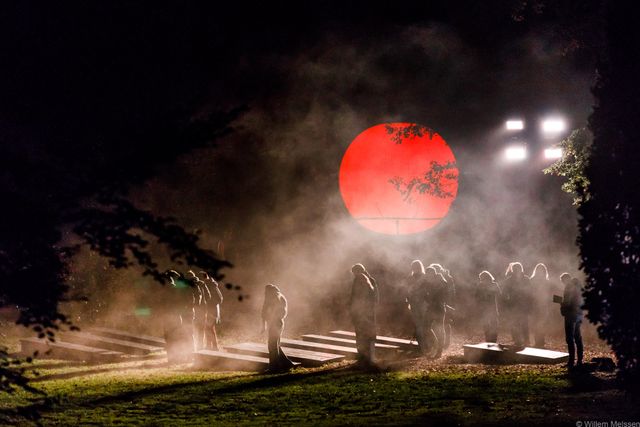 De route omvat twaalf kunstwerken en net als vorig jaar biedt ook nu het Openluchttheater een podium aan een grootse en intrigerende installatie. In Sudden Rupture – The mirror falls zweeft in de nok van de tent een gepolijste spiegelbol boven een schaal gevuld met water. De bol weerspiegelt de omgeving en reflecteert het water onder zich. Dan, zonder waarschuwing, valt hij. De waterspiegel spat uiteen, licht breekt, mist stijgt op en dan keert de stilte terug. Tot de bol zich langzaam verheft. Water glijdt langs de spiegelende huid omlaag in oplichtende druppels en het proces herhaalt zich – of toch niet. Soms zakt de bal rustig omlaag en blijft hangen, net boven het water, terwijl kleine golfjes aan de bodem likken. Een bijzonder intrigerende installatie waar je naar wilt blijven kijken; een prima medium om de tijd te vergeten.
