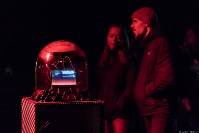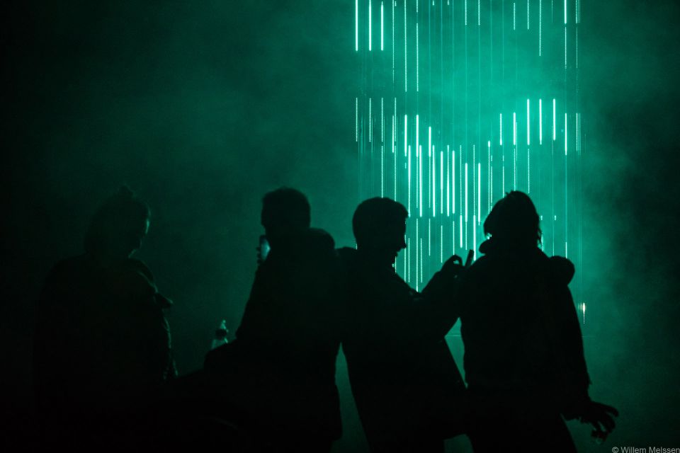 Even tijdrovend als het aankomt op de aandacht gevangen te houden is de installatie Dreaming infinite. We zien twee kolommen: een digitale monoliet en een meer traditionele perspex vorm. De monoliet is opgebouwd uit programmeerbare ledlichten en ‘droomt’ voortdurend nieuwe auditieve en visuele vormen volgens een evolutionair algoritme. De tijd verstrijkt ongemerkt, je blijft kijken, elke blik is anders. In de kleinere kolom liggen de algoritmes vast zodat ze door toekomstige generaties gevonden kunnen worden, en toegepast.