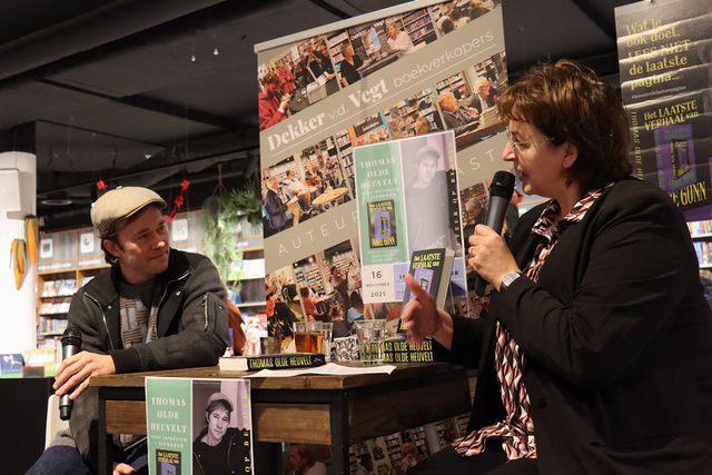 ‘Voorlopig dan’, grijnst Thomas als hij op zondag 16 november zijn boek presenteert bij Dekker van de Vegt. Hij heeft er dan al een heel boekencircus op zitten. Want niet alleen ‘Het laatste verhaal’ kwam uit: ook de Engelse vertaling van ‘November’ met de titel ‘Darker days’ verscheen en er was een internationale boekentour gepland. De reis langs de Nederlandse (en Vlaamse) boekwinkels zal daarom dit keer een beperkt aantal optredens bevatten waarbij natuurlijk Dekker van de Vegt niet mag ontbreken. Hier is tenslotte zijn schrijversloopbaan begonnen toen hij als jochie van 11 verlangend keek naar de planken vol boeken van Stephen King en dacht: ‘dat wil ik ook ..’, en hier presenteerde hij als 19-jarige in 2002 zijn eerste boek ‘De onvoorziene’ en al zijn volgende boeken.
