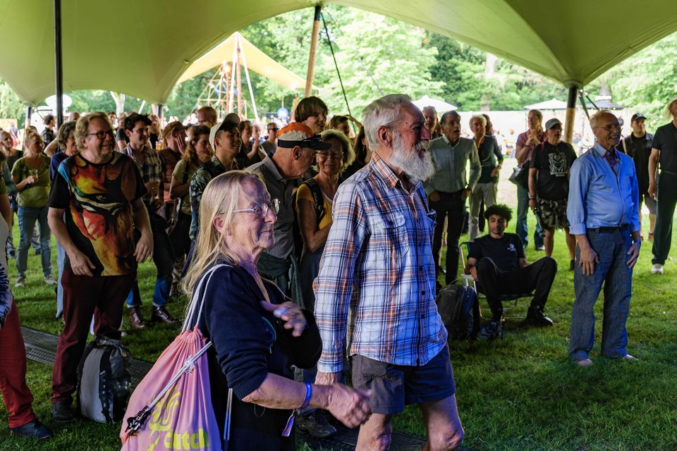 Zo ook op de eerste festivaldag bij een primeur. Tijdens corona begonnen de handen van de van oorsprong Afrikaanse muzikanten te jeuken en formatie Naamu werd geboren. Nu konden ze eindelijk laten horen wat ze in die tijd hebben gecomponeerd, vergezeld van onder meer een tenorsax en wel vier zangers. Na hun oeverloze blijdschap daarover te uiten, verliet de band met een grote glimlach onder daverend applaus het podium. Een aanrader? Het nummer Kèlè Ka Bila.