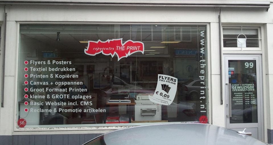 Copycenter The Print bestaat al meer dan 30 jaar. Je kan bij ons kopiëren of printen vanaf één van onze computers met internetverbinding. Ook kun je altijd terecht bij één van onze werknemers. Kant-en-klaar printwerk en drukwerk zoals flyers, kaarten, magazines, posters en visitekaartjes kun je bestellen op onze website of in onze vestiging te Nijmegen & Tilburg. Verder hebben wij diverse afwerkingen voor je documenten, zoals snijden, vouwen/rillen, nieten, perforeren, maar ook lamineren en inbinden. Ook hebben wij allerlei kleuren en papiersoorten in verschillende diktes. Het bedrukken van texiel is zeker ook mogelijk, met transferdruk en vinyldruk.