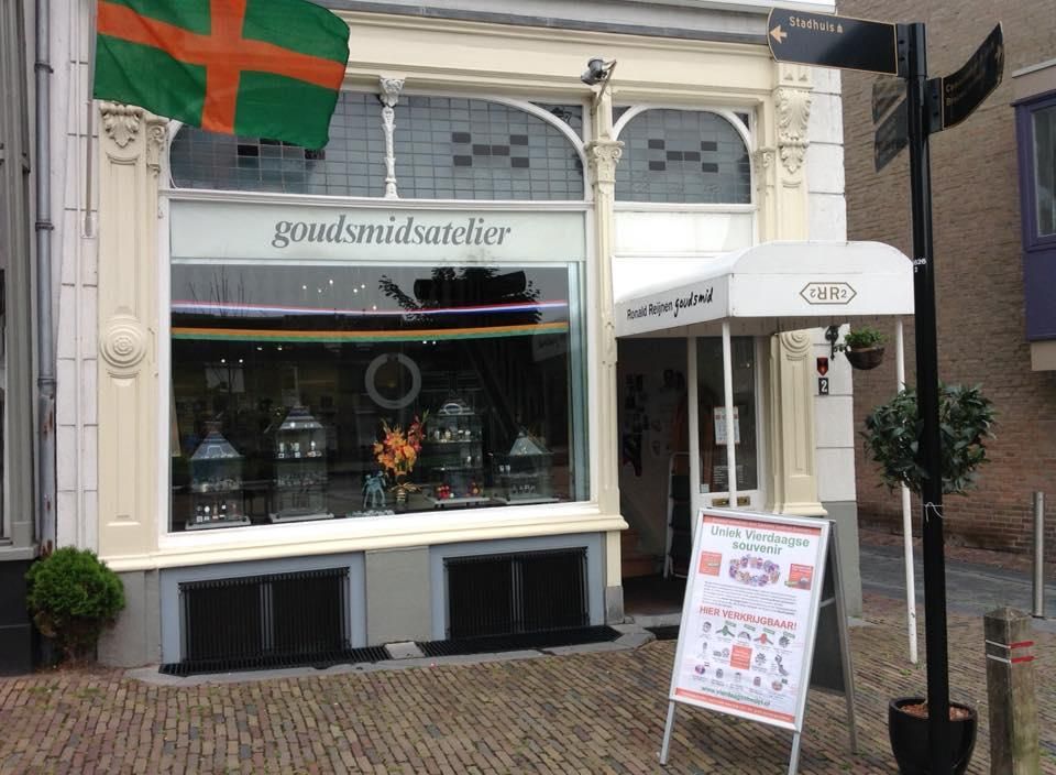 Goudsmederij Ronald Reijnen is een ambachtelijke goudsmid en juwelier gevestigd aan de Kannenmarkt 2. In zijn karakteristieke atelier ontwerpt en maakt Ronald Reijnen al tientallen jaren handgemaakte sieraden op maat, van trouwringen en colliers tot armbanden en horloges, waarbij elk stuk een persoonlijk verhaal vertelt en met edelmetalen zoals goud, zilver, palladium en edelstenen wordt gesmeed. Naast het creëren van unieke sieraden biedt hij ook reparatie, restauratie en gravure‑diensten aan voor dierbare juwelen die een nieuw leven verdienen.