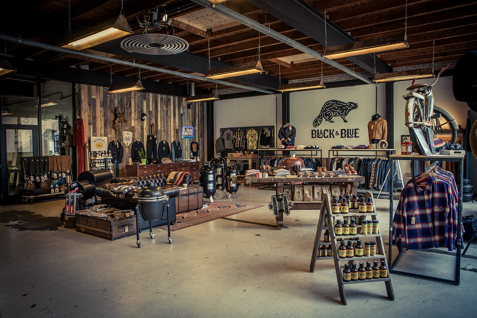IN EEN AMERIKAANSE SFEER COMBINEREN WE HERITAGE CLOTHING, AUTHENTIEKE DENIM, BARBECUES EN SMOKERS. OP EEN OUDE NAAIMACHINE WORDT DE DENIM HERSTELD TERWIJL EEN BARBECUE STAAT TE ROKEN. GROTE BANKEN IN HET MIDDEN VAN DE ZAAK NODIGEN IEDEREEN UIT OM ZIJN EIGEN PASSIE TE DELEN.