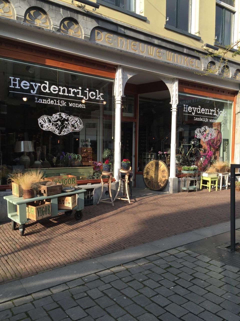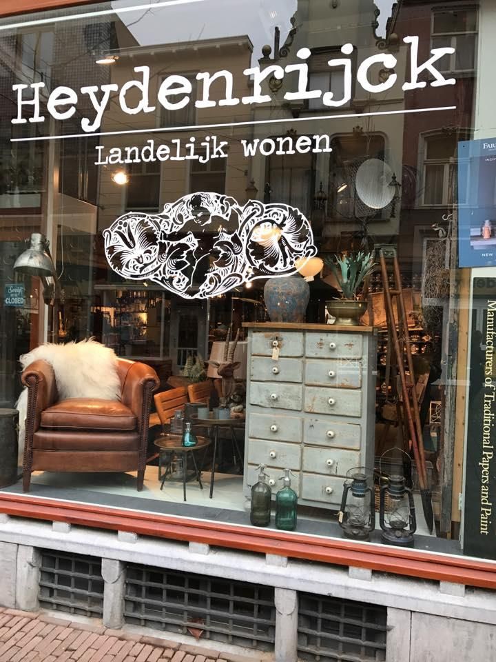 Het Heydenrijck, welke al 26 jaar bestaat, is een gezellige woonwinkel waar er nog tijd is voor een stukje persoonlijk advies. Wij verkopen onder andere oude meubelen, ook in de originele oude verf, gezellige stoffen banken, verlichting van o.a.Tierlantijn en van ons eigen merk met een stoere industriële uitstraling en woondecoraties. Ook verkopen wij deurbeslag. Verder zijn we officieel dealer van de prachtige verf en behang van Farrow & Ball. U kunt gratis een kleurwaaier en productinformatie afhalen. De verf en nog veel meer is bij ons online te bestellen op onze website www.heydenrijck.nl Tevens maken we meubelen op maat zoals tafels van oud of nieuw hout, kasten maar ook een keuken met bijvoorbeeld een nostalgische uitstraling is mogelijk. Verder restaureren wij meubelen. Kortom wij hebben veel te bieden. Eigenaren Pieter en Wilma willen u dan ook uitnodigen om eens langs te komen zodat u de sfeer van de winkel zelf kunt proeven. U vindt ons in de Lange Hezelstraat 10 in het centrum van Nijmegen. Kijk voor de koopzondagen op onze web site www.heydenrijck.nl