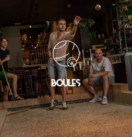 the BOULES club NIJMEGEN Welkom bij The Boules Club Nijmegen! The Boules Club Nijmegen is de ultieme horeca beleving waar je je vrienden, familie of collega’s uitnodigt voor een geheel nieuwe ervaring. De combinatie van Jeudeboule, Food, Drink en gezelligheid in een Urban ambiance. Een ideaal uitje voor groepen, verjaardagen, personeels- of bedrijfsuitjes, maar ook voor andere groepsactiviteiten zoals een familiedag of een originele teamactiviteit. Een beleving voor jong en oud! Au Revoir!