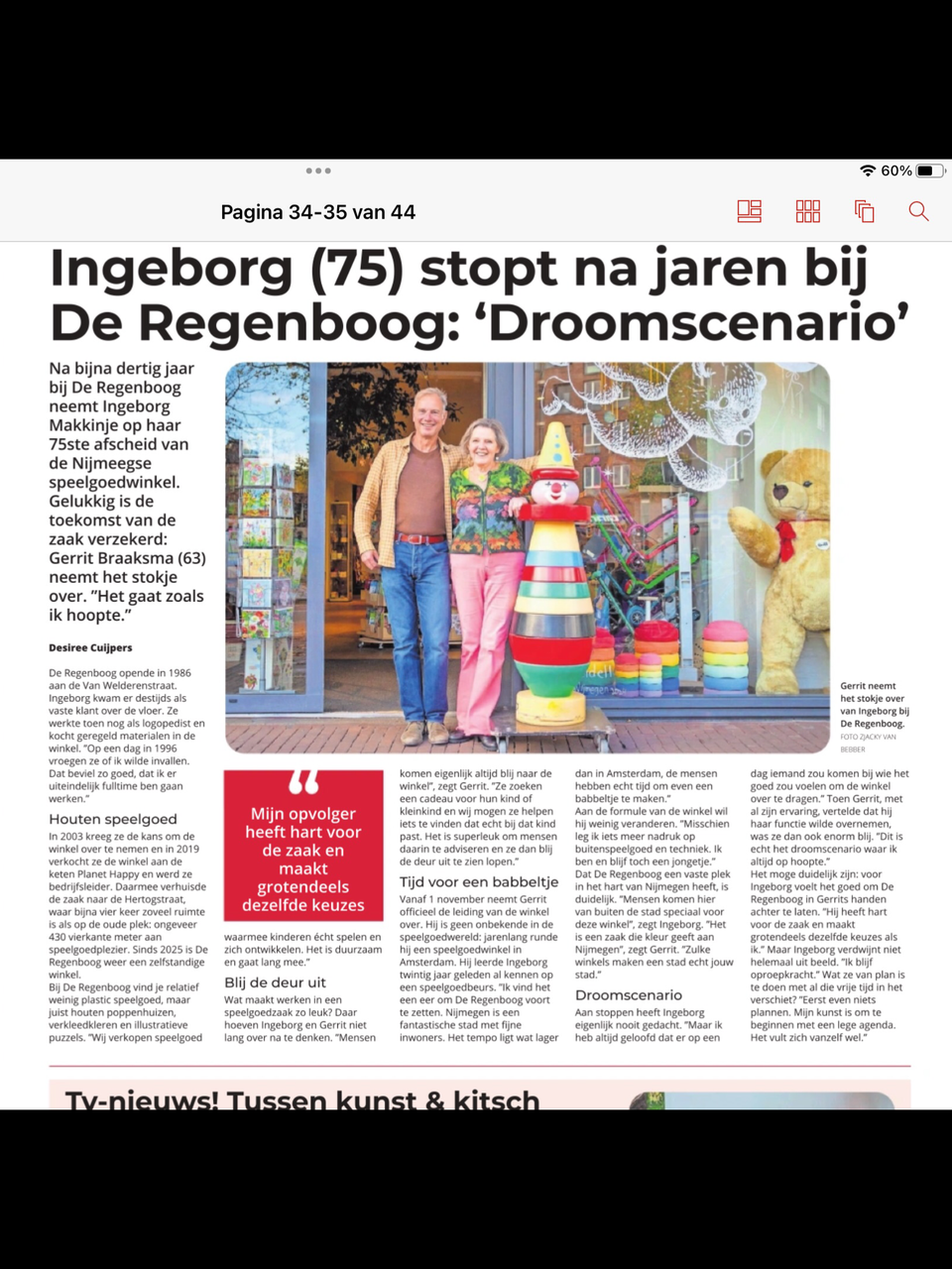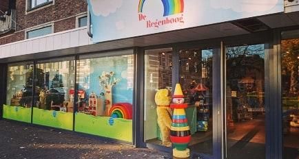 Speelgoedwinkel De Regenboog: U vindt hier niet alleen houten speelgoed en ( prenten-) boeken, maar ook lieve poppen, zachte knuffels, levensechte handpoppen, puzzels en spelletjes voor de kleineren, experimenteer-en ontdekdozen voor de groten en creatief knutselplezier voor alle leeftijden. Laat u verrassen...! Terwijl u rustig rondkijkt, kunnen de kindjes zich vermaken met de BRIO treinbaan, DUPLO blokken, de knikkerbaan of op het hobbelpaard.
