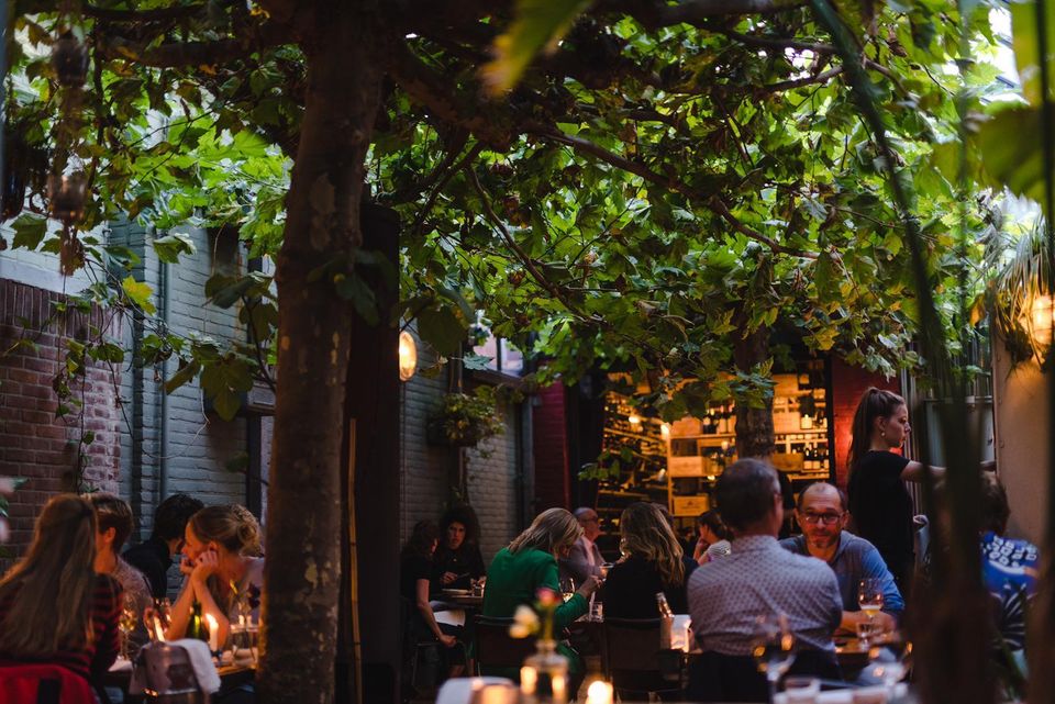 Sinds 2016 is onze patio overdekt met een schuifdak en is het mogelijk om een plek te boeken in de zaal, patio of aan de bar. In onze patio zit je in de buurt van de open haard en de wijnkamers. Als het koud is of regent gaat het dak dicht en blazen we warme lucht naar binnen. Met mooi weer gaan in de zaal de ramen eruit. Hier zit je in de buurt van de bar en de open keuken. Je schuift aan bij Willem, onze barman, of bij de koks aan de keukenbar.